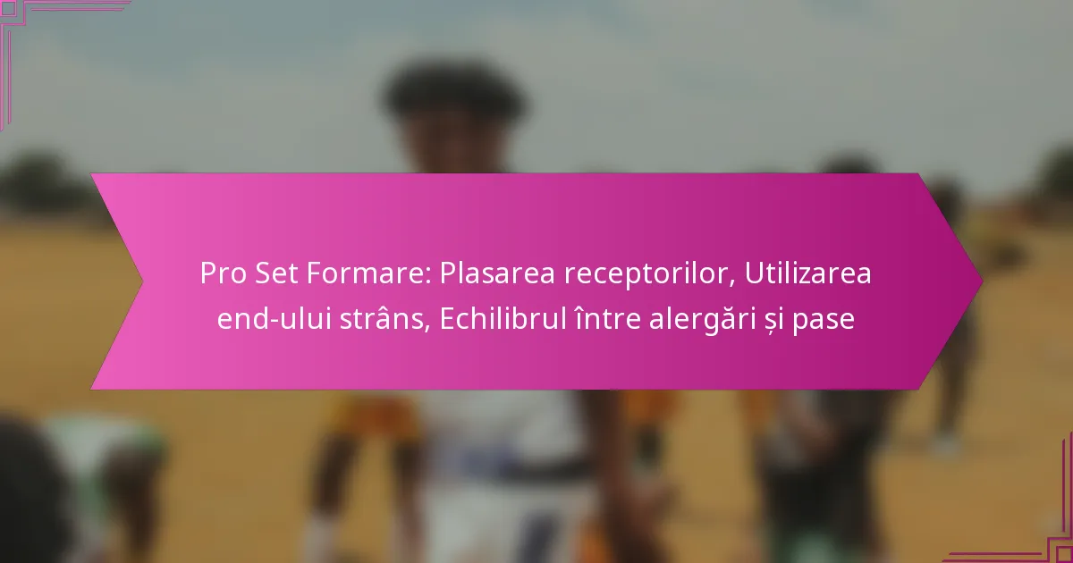 În formația Pro Set, recepționerii sunt poziționați strategic pentru a optimiza spațierea și a crea meciuri favorabile împotriva apărătorilor. De obicei, această formație include doi wide receivers, un tight end și un running back, permițând un atac echilibrat între jocurile de alergare și cele de pasare.